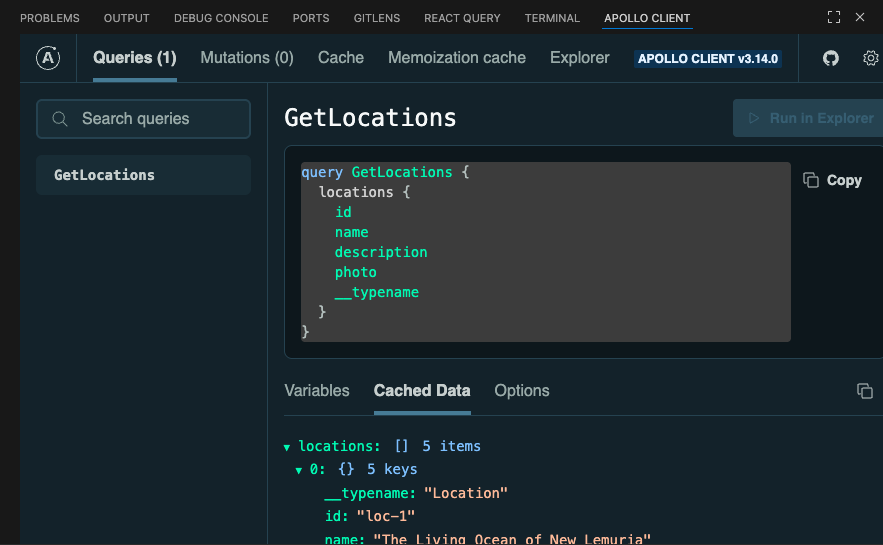 - Apollo Client DevTools: Inspect Apollo Client logs via built-in Apollo Client DevTools panel.